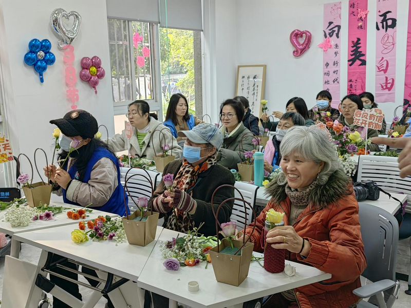 莫愁湖社区手工花制作课程现场