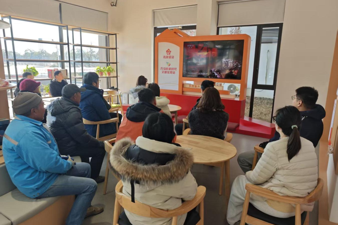无锡市惠山区洛社镇万马村党总支组织党员群众在党群服务中心通过重播形式收看《榜样10》节目。
